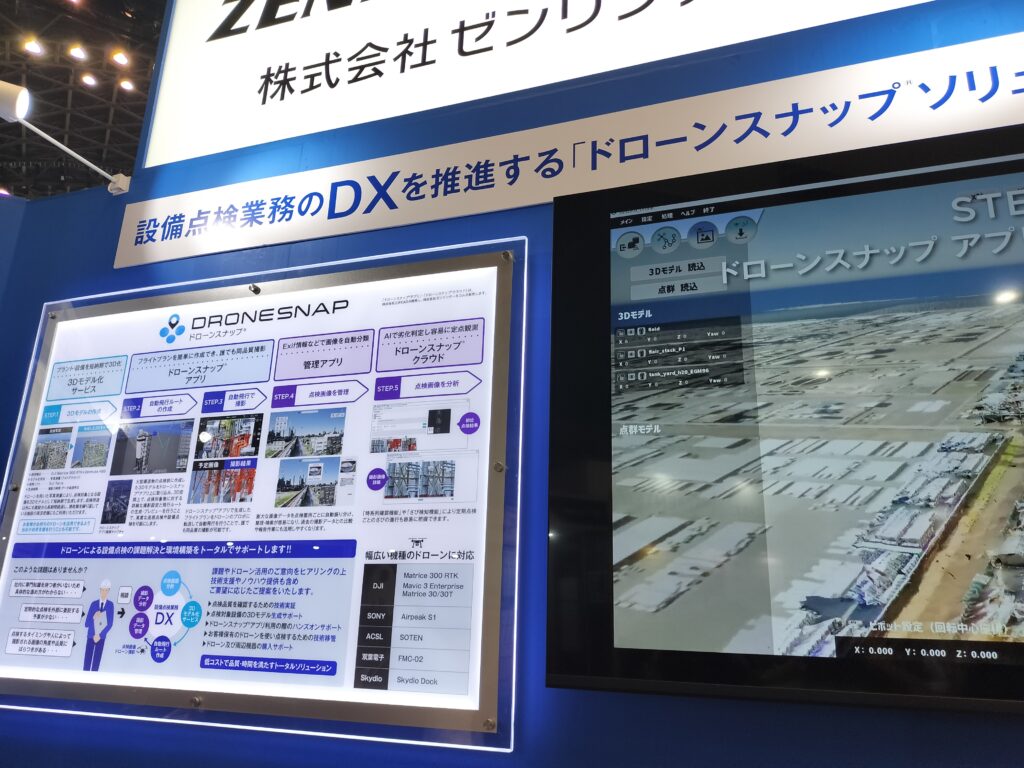 ブースでは実証実験としてクラサスケミカル株式会社の大分コンビナートで実施した飛行点検をもとに、説明をしていただきました。